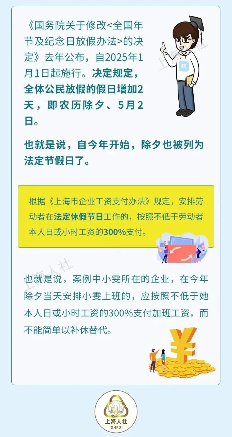 上海人社最新回应:今年除夕加班,要支付3倍工资!不能补休替代!