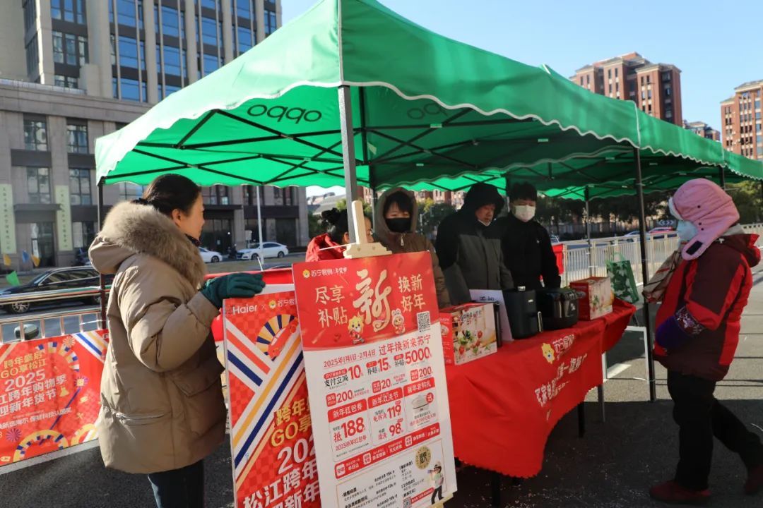 值得一提的是,苏宁易购、永辉超市等纷纷推出一系列便民服务。苏宁易购不仅提供家电以旧换新补贴,还推出家电清洗、维修等服务,消费者购买大家电时,最高可享受2000元补贴。此外,还提供过年烟灶清洗、冰箱保养等优惠项目,满足居民的需求。永辉超市则通过下乡赶集的形式,将商品送到松江各个街镇,进一步推动年货节活动的深入开展。