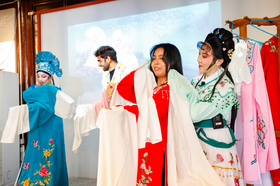 不少留学生体验了古琴弹奏、汉服走秀、写福字等活动,学习了非遗文化技艺,沉浸式感受独特的中国文化。加纳留学生安威廉说:“今天有这么多传统文化项目让我们体验,我对这些内容都很感兴趣,迫不及待地想和家人朋友分享这些新鲜事。”