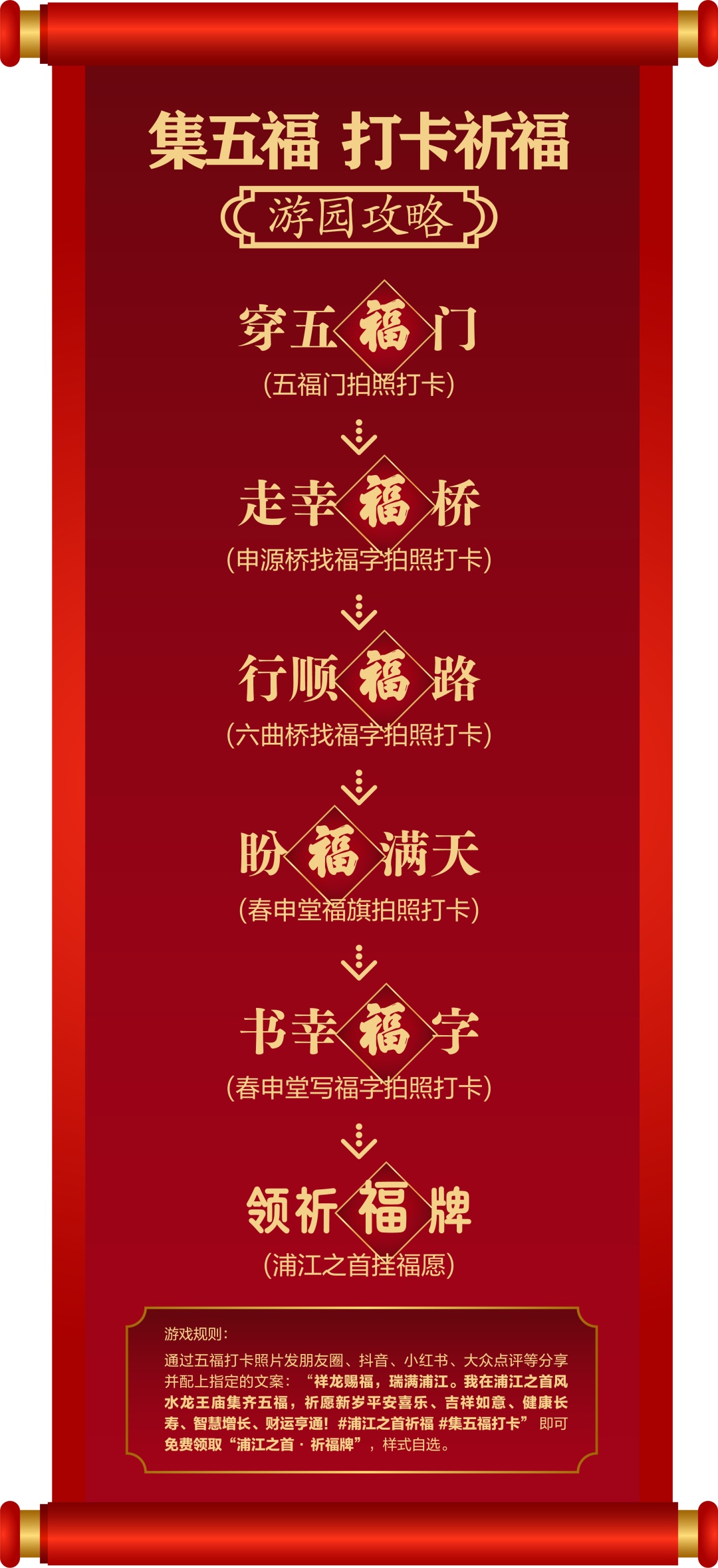 活动内容:新年期间公园内设有祈福处、民俗游戏体验处,供游客登高祈愿,体验民俗游戏。也别忘了和公园的各打卡点和专属上上签互动打卡拍照。