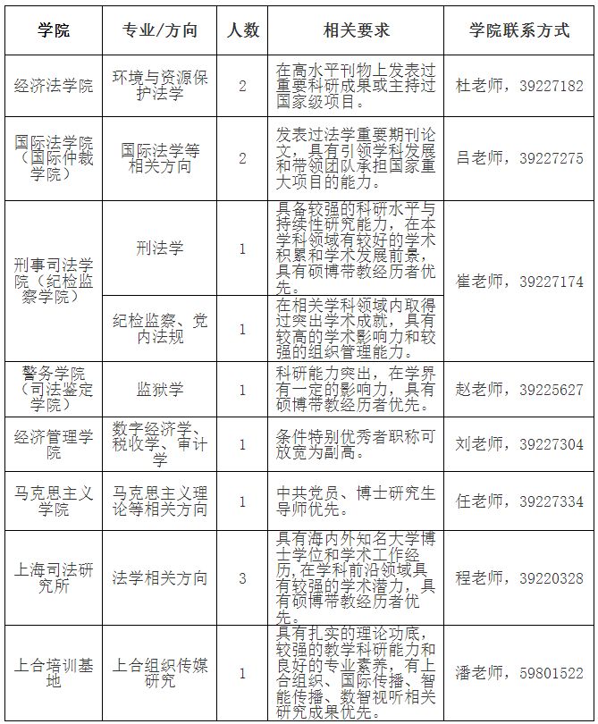 应聘人员的研究方向应是我校学科专业建设所急需,年龄一般不超过50周岁,除特别备注外,原则上应具有正高职称。