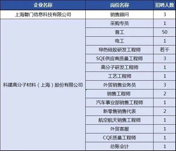 招聘岗位一览表