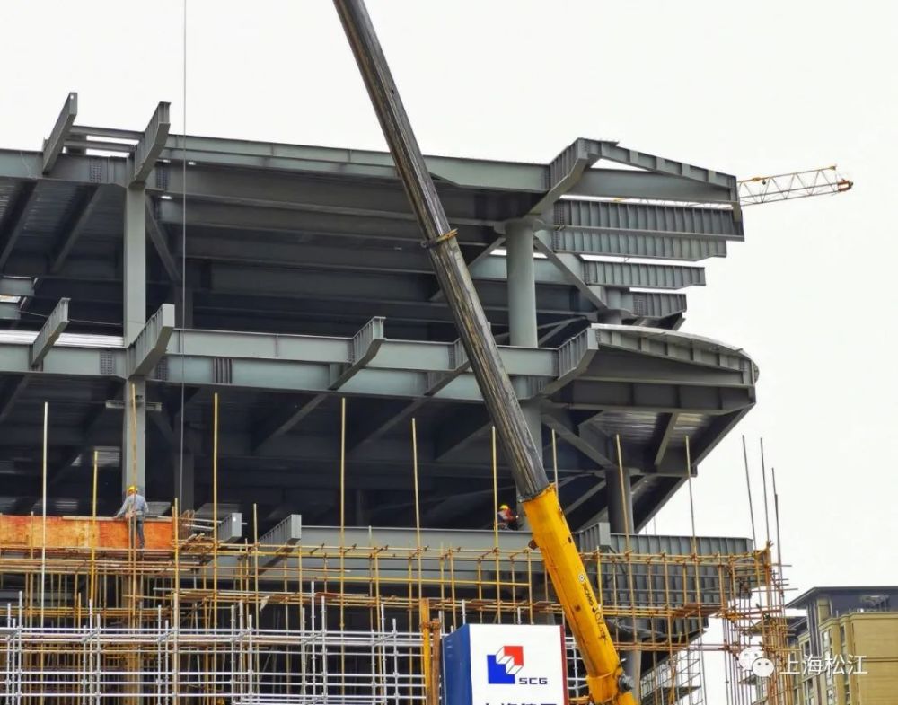 该项目位于广富林路与人民北路交叉口东北侧,地上建筑面积约7.4万平方米,地下建筑面积约8.1万平方米。建筑分为地上四层,地下二层为停车场,规划停车位约1100个,及地下一层设立了非机动车专用停车场。