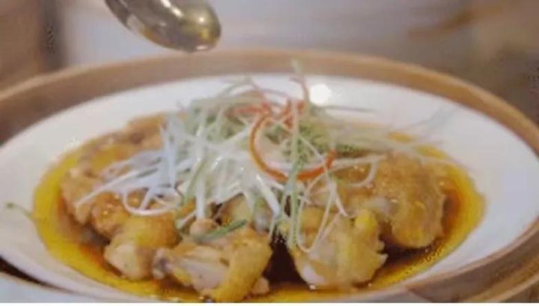 一只完美的玫瑰豉油鸡,望之有焦糖的色泽,闻着有玫瑰的芳香,吃进嘴里鸡肉软滑兼有豉香。