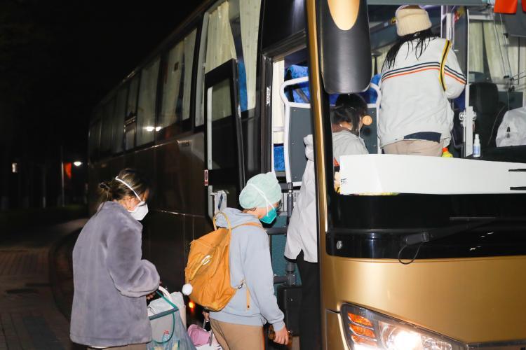 3月18日晚7时,6辆转运大巴缓缓驶进华东政法大学松江校区,待学生有序上车后,车辆驶离学校前往东方绿舟别墅酒店。据了解,当晚6辆转运大巴共往返12趟,解决了首批100多名华政学子的洗浴难题。