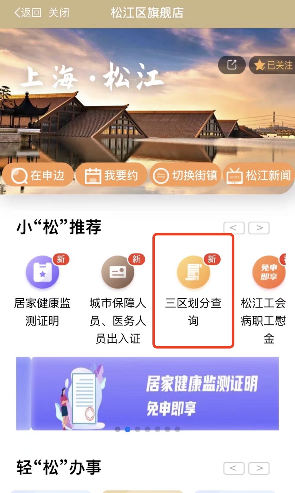 为方便居民及时了解所在区域的“三区”状态,获悉“三区”防控要求,近日,“随申办”松江旗舰店正式上线 “三区”划分查询服务,居民只要输入所在街道、小区名称,就可以获得最新发布的“三区”划分信息。