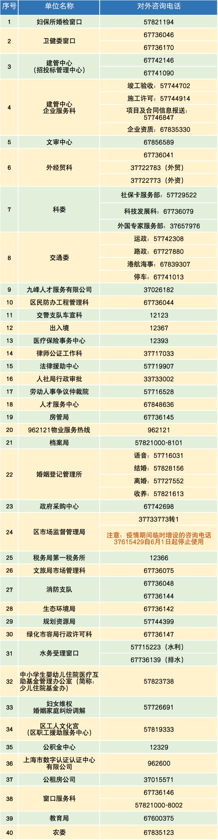 入驻单位对外咨询电话