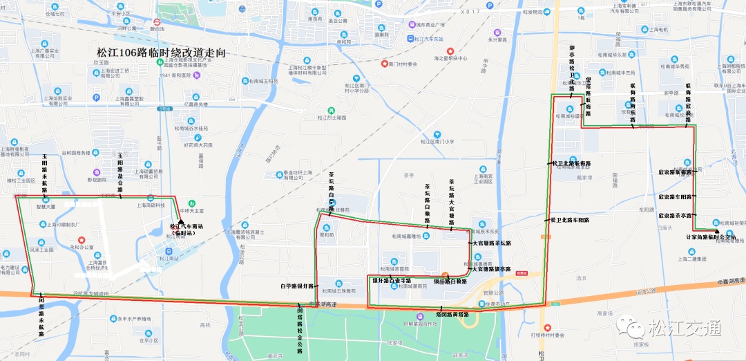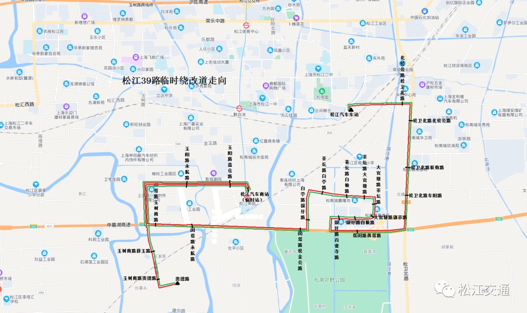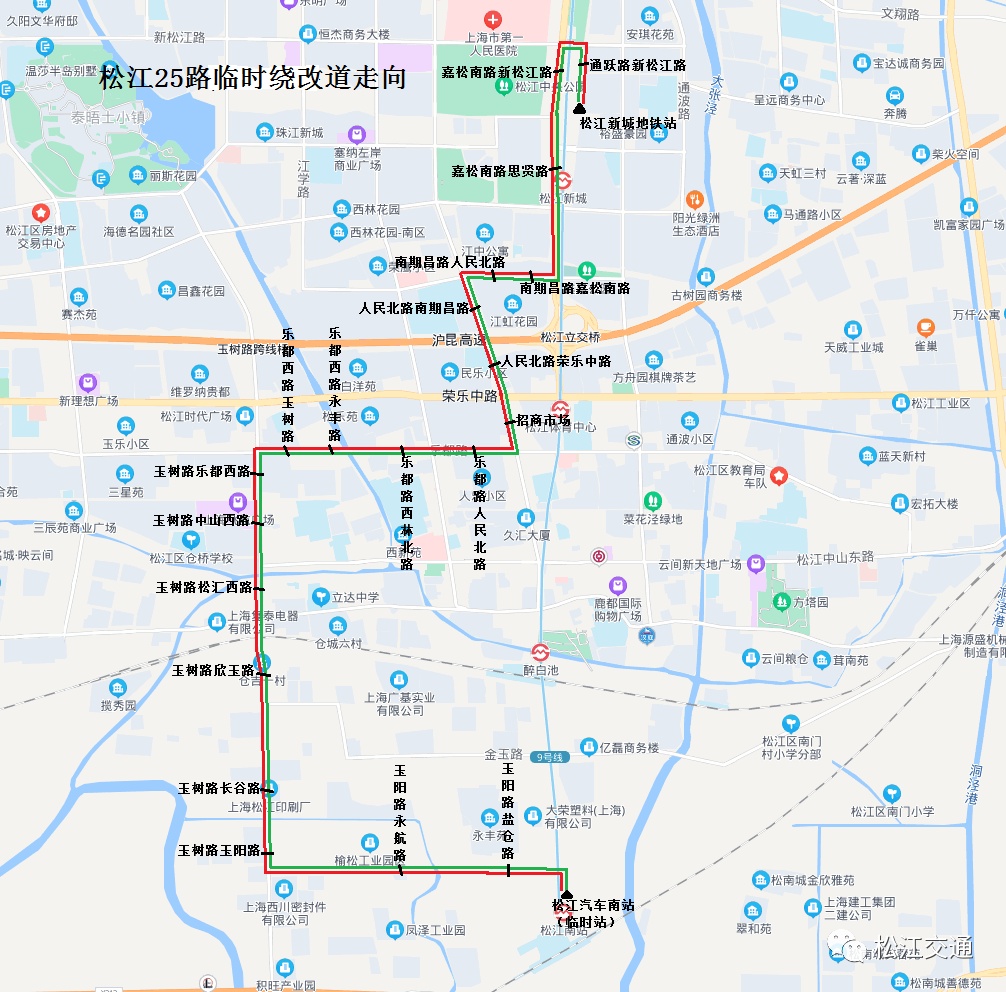 临时新增站点:玉阳路盐仓路、松江汽车南站(临时站)