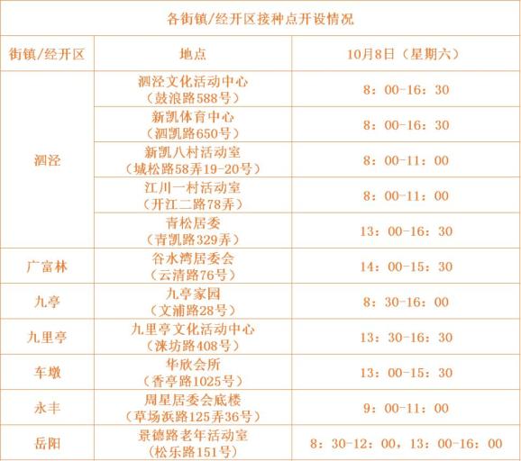 注:接种点当日开放情况以属地街镇告知为准。如遇核酸筛查,视情况暂停接种点开放。