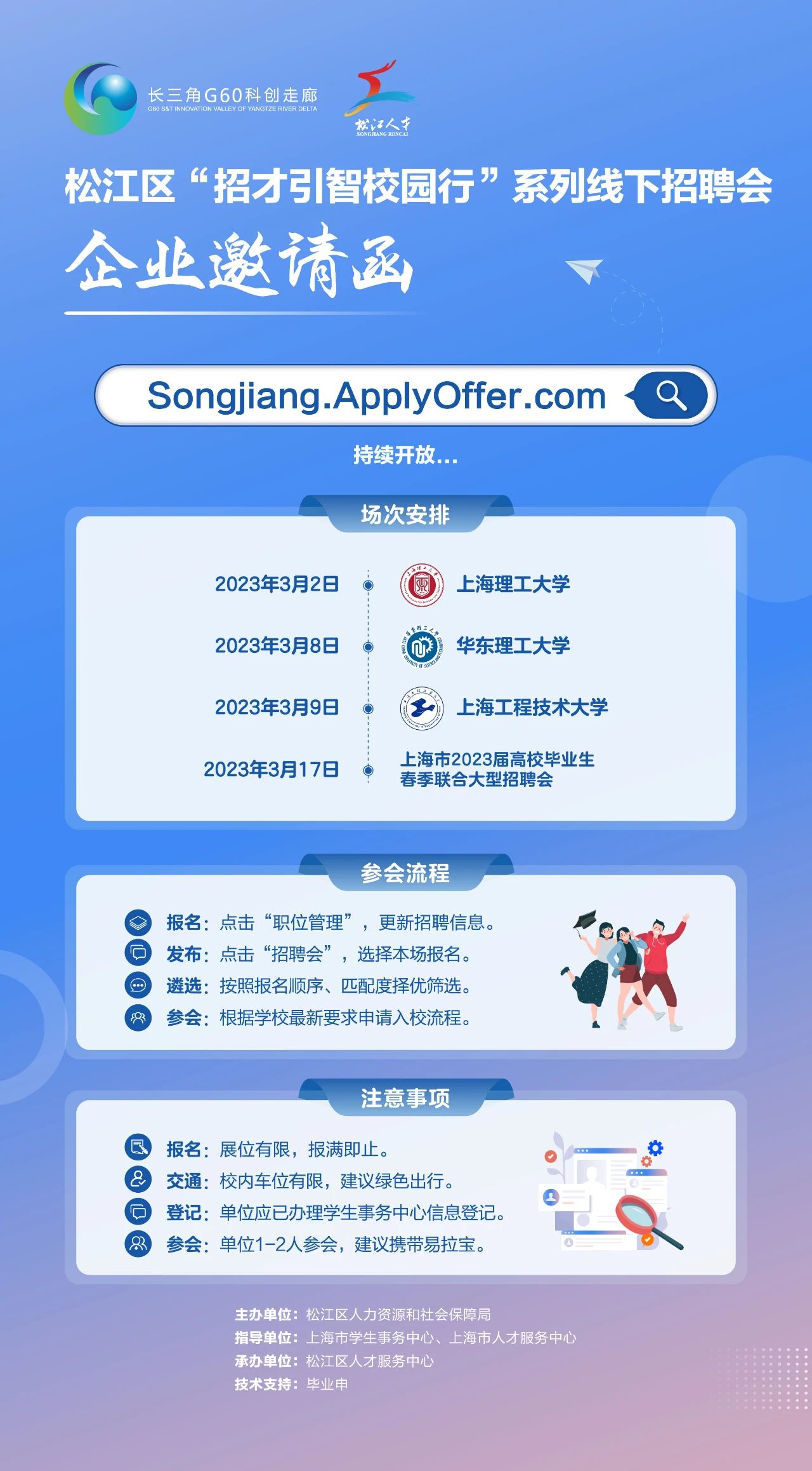 企业邀请函 | 松江区“招才引智校园行”系列线下招聘会