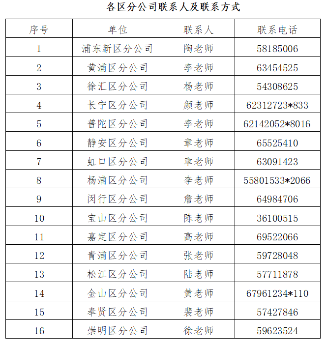 相关网点信息可详询分公司联系人