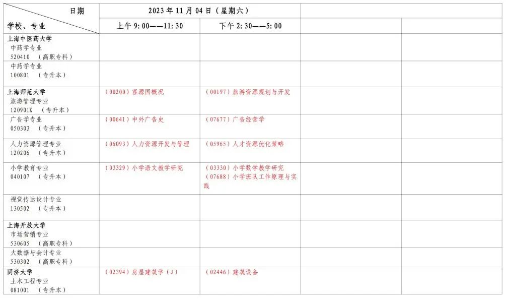 市教育考试院介绍,2023年下半年我市高等教育自学考试将在10月28日、10月29日、11月4日举行,共三天。《2023年10月上海市高等教育自学考试各专业课程考试日程安排表》及《2023年10月上海市高等教育自学考试教材考纲书目表》已公布,详见↓