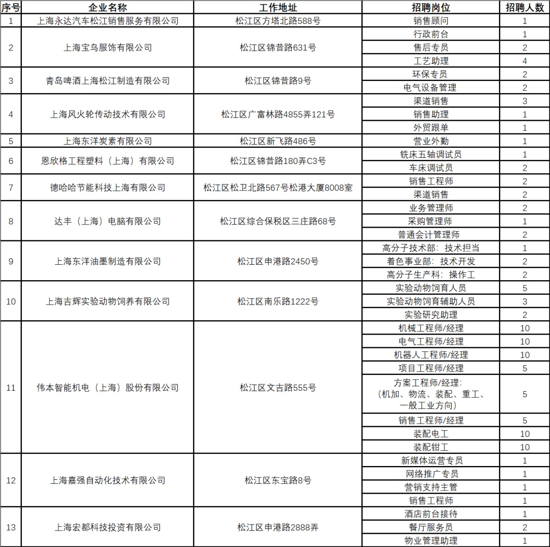 松江区一类重点企业正在招人,7岗可选,月薪最高4W!