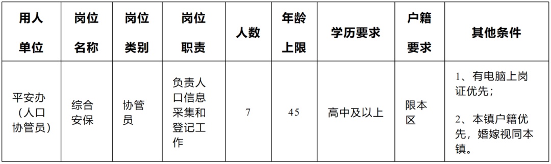 即日起,洞泾镇平安办拟面向社会招聘若干名协管员,现将有关事项公告如下:01一、 招聘职位和条件: