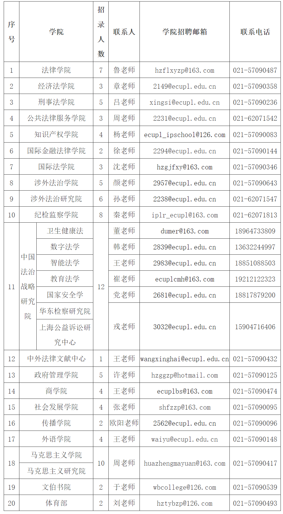 下载并填写《华东政法大学应聘人员登记表》,附上学术代表作扫描件,发送至相关学院(部)或研究机构联系人邮箱,同时抄送huazhenghr@vip.163.com,邮件主题请标明“应聘学院(部) 岗位 姓名 毕业院校”。