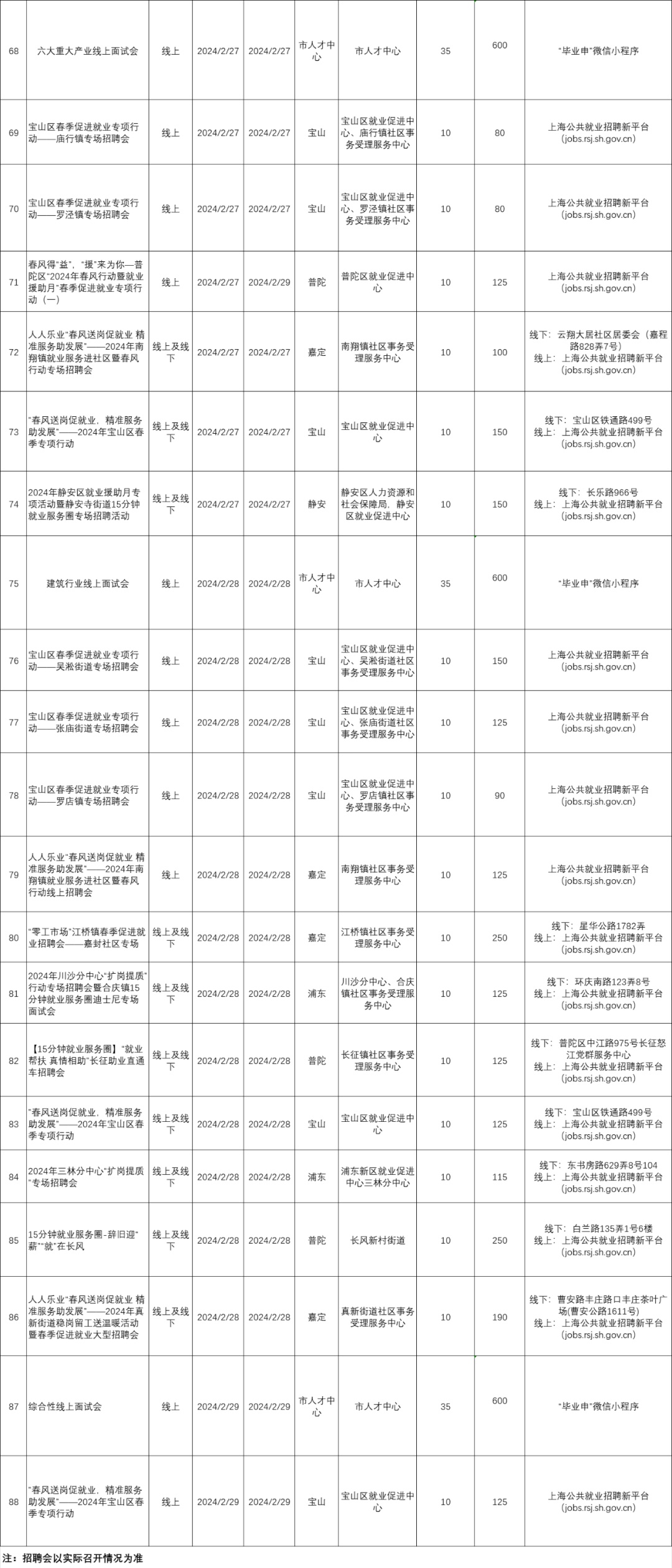 为深入贯彻党中央、国务院和市委、市政府决策部署,切实抓好稳就业开局起步工作,本市将在全市范围内集中开展系列专场招聘活动,聚焦新市民和青年人等重点群体就业帮扶,通过线上线下紧密结合,打造春节期间“不打烊”招聘服务。在新的一年,让我们与广大劳动者“就”在上海,乐在其中!