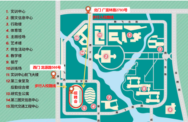 3.本次招聘会也为同学们安排了地铁站至招聘会现场的短驳车,自行前往学生下地铁后可根据指引按需乘坐(具体位置:松江大学城地铁站马路对面天桥下方)。