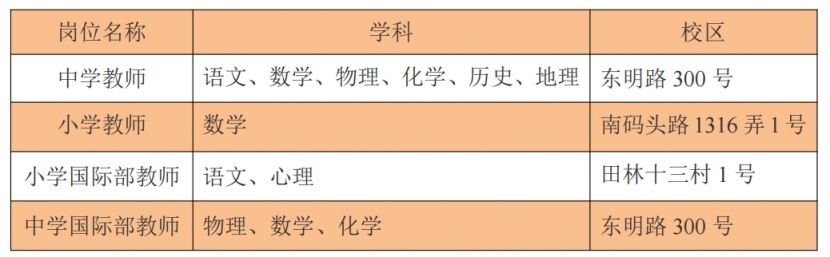 根据《上海市事业单位公开招聘人员办法》(沪人社规〔2019〕15号),结合学校发展需要,按照公开、平等、竞争、择优的原则,面向社会公开招聘中小学教师。