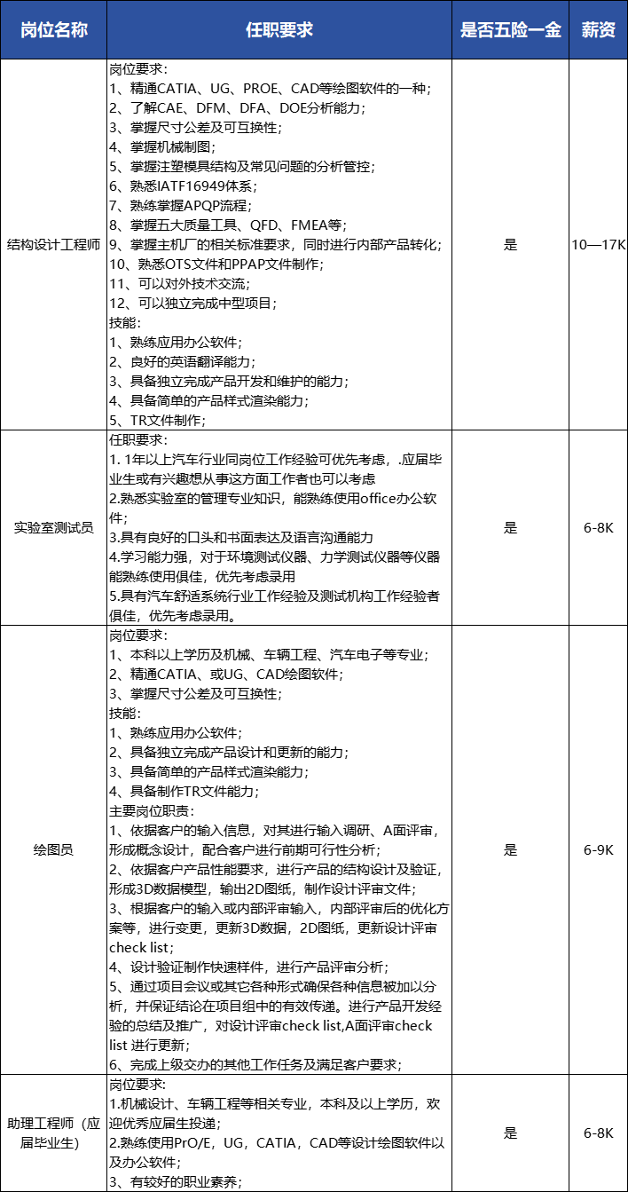 松江区重点扶持企业舒井汽车系统正在招人,月薪最高17K